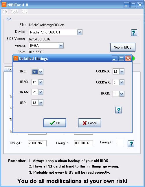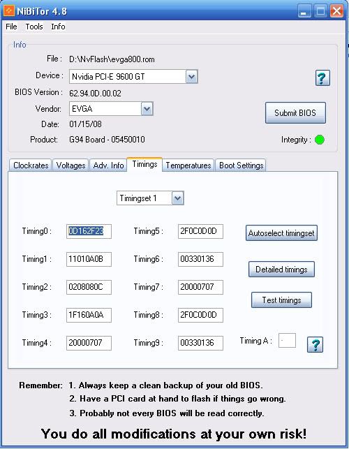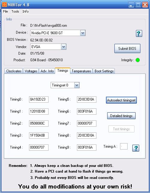 There are many perset timing profiles. To find the one your card is using click "Autoselect timingset" Then click on which card's BIOS you are working on. Then click "OK"
