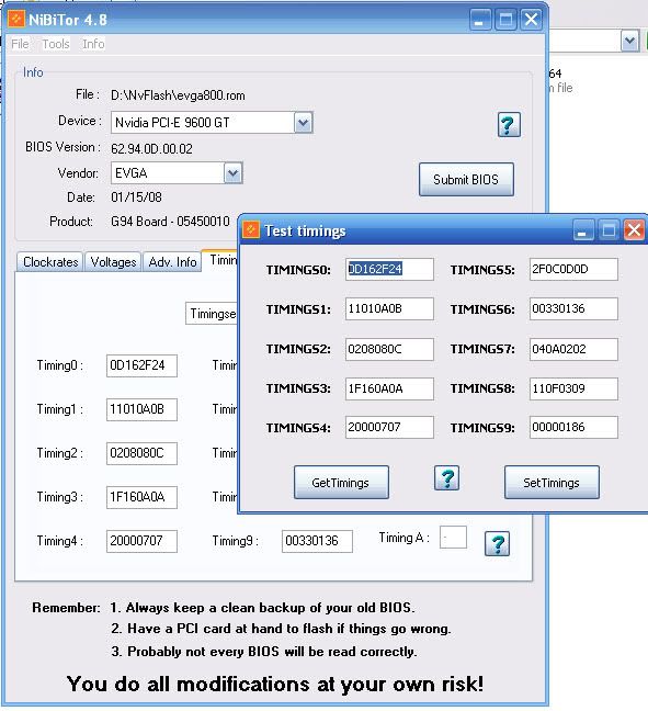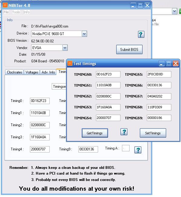 Now click "Test timings. Then click "Get timings". Now paste the new code for Timings0 and click "SetTimings"
