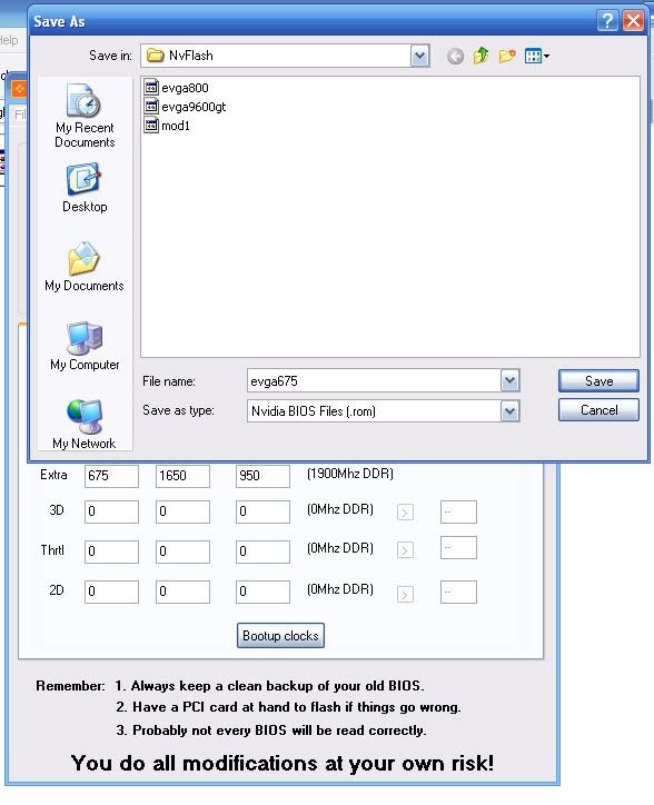 Navigate to your nvflash folder and save the new BIOS file. Do not write over your backup file as you might need it later.