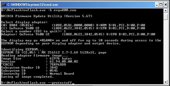 Now to make a backup of your original BIOS. Type: nvflash.exe -b filename.rom" Choose what ever file name you wish.