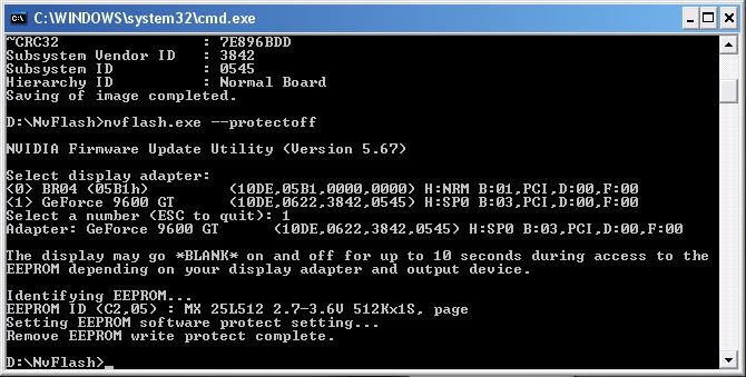 Pull up the cmd promt you minimized at the beginning. Now type: "nvflash.exe --protectoff"